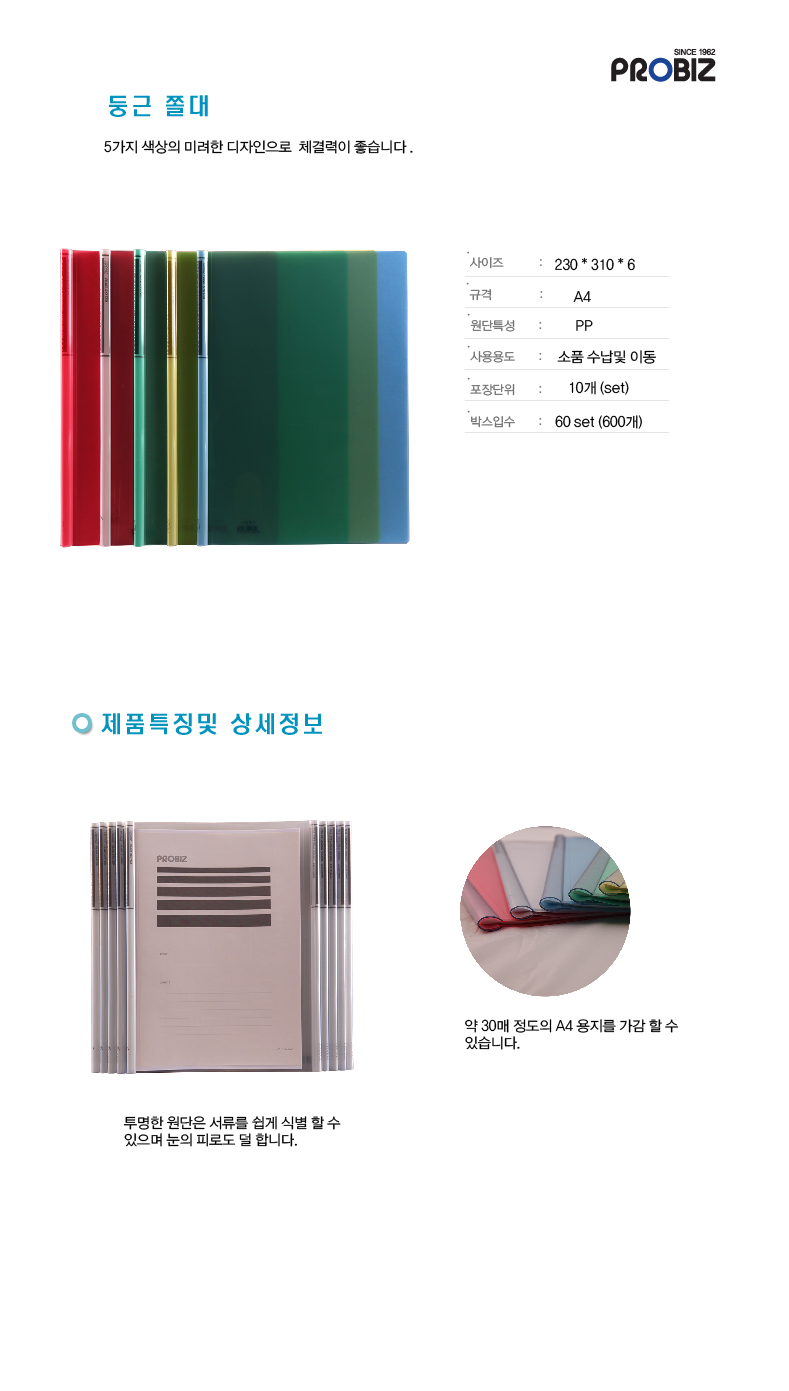 품명프로비즈 둥근쫄대화일(A4/연녹/10매/팩)