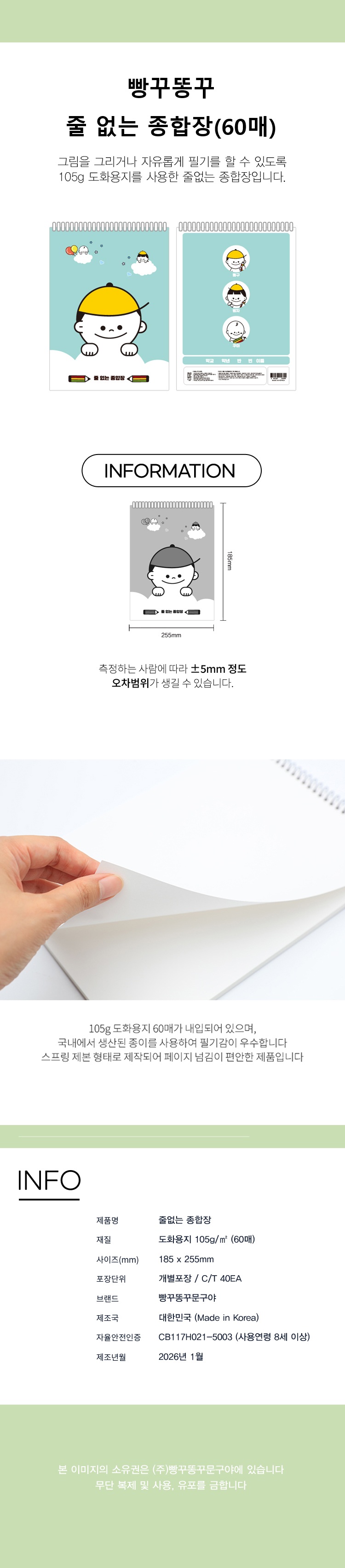 품명빵꾸똥꾸 줄 없는 종합장(185x255mm/60매)